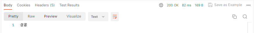 return new ResponseEntity<>("성공", HttpStatus.OK); // body는 생략가능