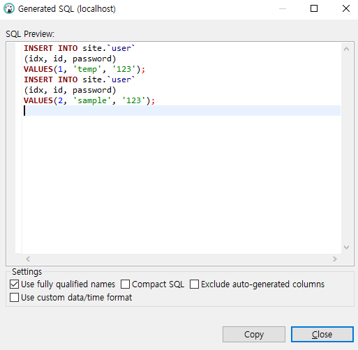 `idx` int(11) NOT NULL AUTO_INCREMENT,