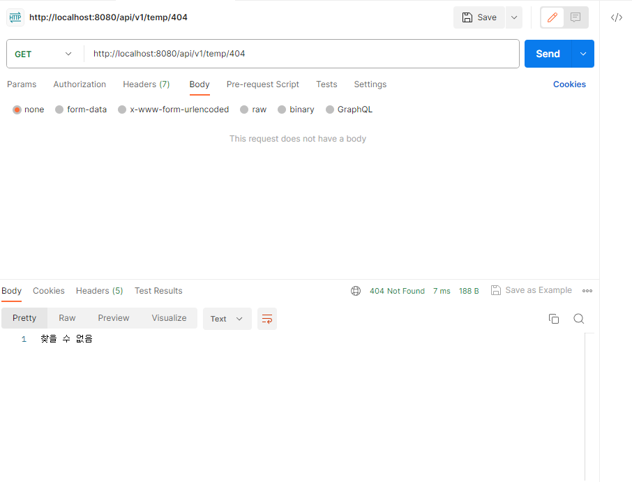 return new ResponseEntity<>("찾을 수 없음", HttpStatus.NOT_FOUND); // body는 생략가능