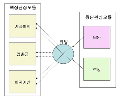 관점 지향은 어떤 로직을 기준으로 핵심적인 관점, 부가적인 관점으로 나누어서 보고 그 관점을 기준으로 모듈화 하겠다는 것이다.