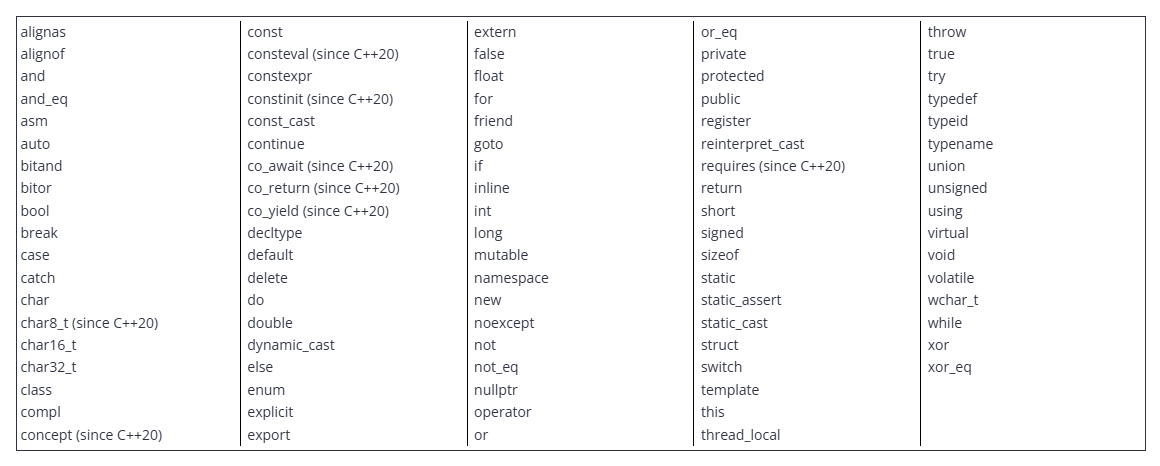 C++에서는 C++23 기준 92개 정도의 keyword가 존재한다, 그렇다면 keyword란 무엇일까?