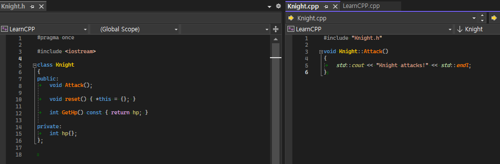 void Knight::Attack() //멤버 함수 정의