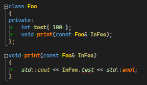 void print(const Foo& InFoo) //print()를 friend로 지정했기 때문에 private멤버인 test에 접근이 가능하다