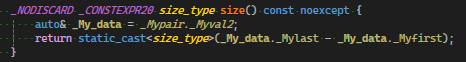 이때 std::size()값을 부호 있는 타입의 변수에 저장할 때 constexpr이더라도 데이터 손실 위험이 있으면 에러가 발생한다, static_cast<>로 캐스팅 하고 사용하는게 좋다