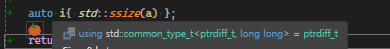 C++20부터는 std::ssize()라는 비멤버 함수가 도입되었다, 이 함수는 길이를 큰 부호있는(signed) 정수 타입 (constexpr std::ptrdiff_t타입 으로 return해준다)