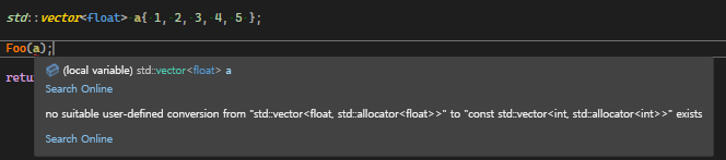 CTAD에 의해 a, b vector의 타입이 정해지고 Foo()에서 템플릿 인수 추론으로 인자로 넣은 타입의 vector를 받아 처리하게 된다
