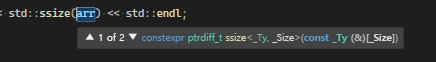 C++20에서는 std::ssize() 비멤버 함수 사용이 가능하다, 이는 signed 정수 타입인 std::ptrdiff_t로 반환한다