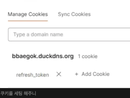 정확히는 쿠키 설정이 제대로 되지 않아 쿠키를 읽을 수 없고 때문에 리프레시 토큰을 검증할 수 없어 새로운 엑세스 토큰이 발급되지 않는 것이었다.