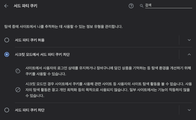 즉 시크릿 모드에서는 보안을 강화하기 위해 기본적으로 서드파키 쿠키를 차단한다.
