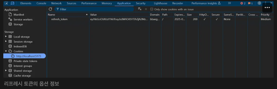 (쿠키의 문제임을 확인하기 전에는 백엔드 문제라고 생각했다. 리프레시 토큰 검증 과정에서 엑세스 토큰의 유효성도 함께 검증했기 때문에, 스프링 시큐리티 내부에서 해당 요청이 필터링 되어 에러가 발생했기 때문이다.)