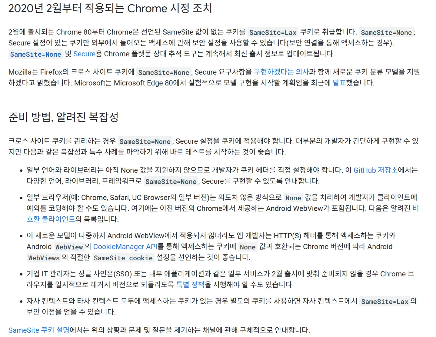조금 더 자세히 찾아보니 쿠키 정책 개선에 대한 문서를 발견했다.