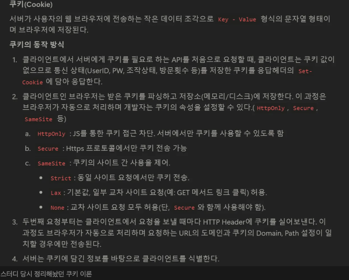 FEDeepDive 스터디에서 공부했던 네트워크 이론에서 쿠키 세팅에 여러 옵션이 있었던 것이 생각났다.