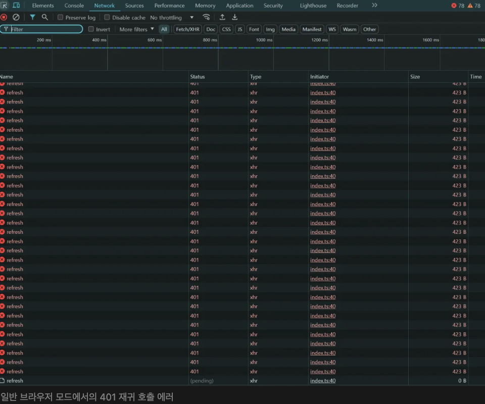 웨일로 작업했더니 401에러가 재귀적으로 호출되는 새로운 에러가 발생했다.