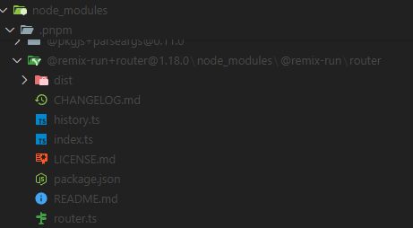 패키지 경로를 따라가보니 `@remix-run/router 모듈이 정상적으로 설치되어 있었다. 처음에는 pnpm의 자세한 원리를 몰라서 .pnpm 폴더 안에 있는 것이 문제라고 생각했다. 그래서 .pnpm폴더에 대해 자세히 알아보기로 했다.