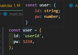 위처럼 작성한 객체의 타입은 정상적으로 추론되는것이 확인되었다. 즉 타입스크립트는 정상적으로 타입 추론을 하고 있다.