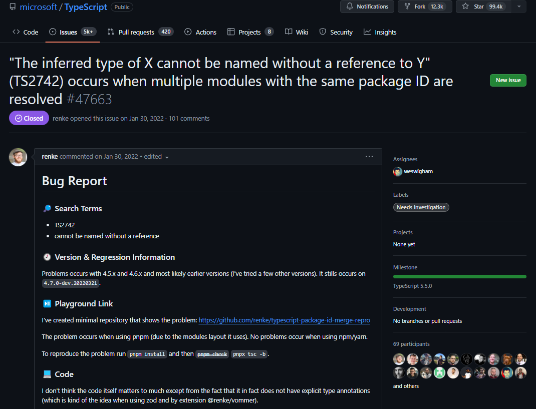 타입스크립트 저장소에서 나와 동일한 문제를 겪고 있는 이슈를 발견했고 해당 이슈의 코멘트에서 문제의 원인을 찾을 수 있었다.