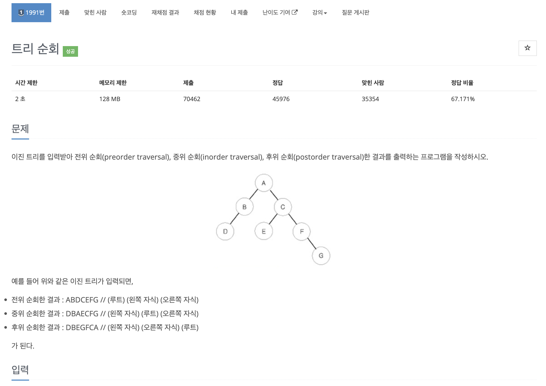 친절하게도 문제에 전위순회, 중위순회, 후위순회가 뭔지 알려준다.