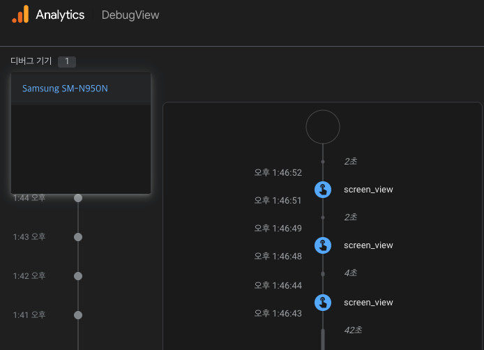 Firebase Console 특성상 analytics 대시보드에 실시간으로 현황이 업데이트 되지 않을 수도 있는데, analytics의 기능이 제대로 실행되고 있는지 디버그뷰를 활용하면 추적할 수 있다