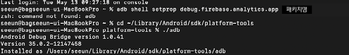 cd ~/Library/Android/sdk/platform-tools- 이후 코드도 동일하게 입력