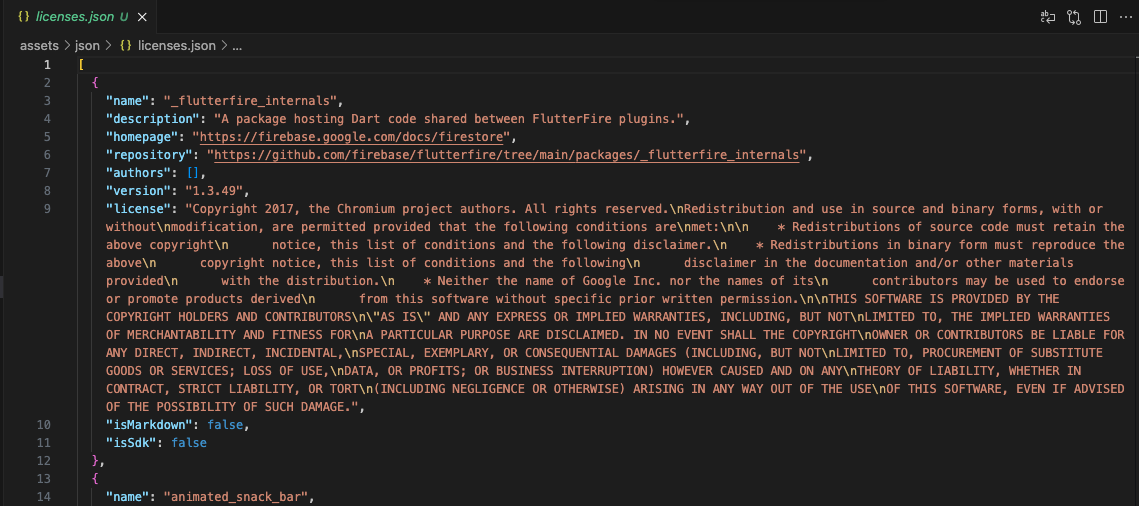 run flutter_oss_licenses:generate -o assets/json/licenses.json --json