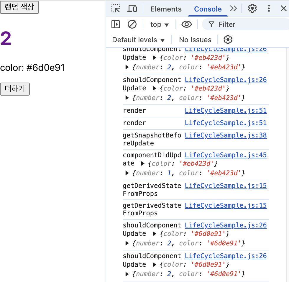 는 부모에게서 받은 color 값을 state에 동기화getSnapshotBeforeUpdate()