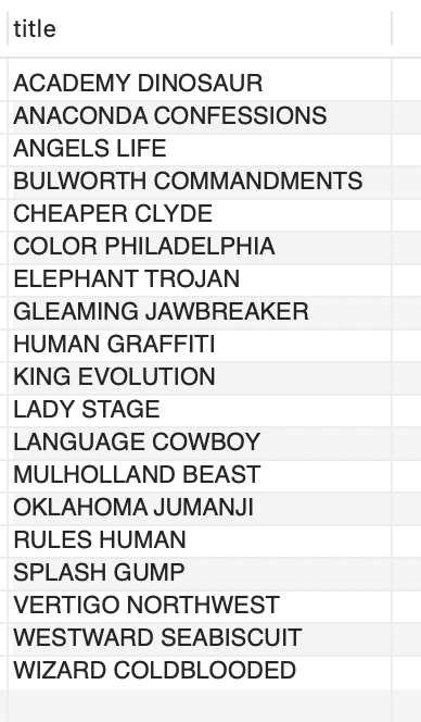 -- 배우 "PENELOPE GUINESS" 의 actor_id 를 가진 film_id를 가진 영화 title을 film에서 찾기