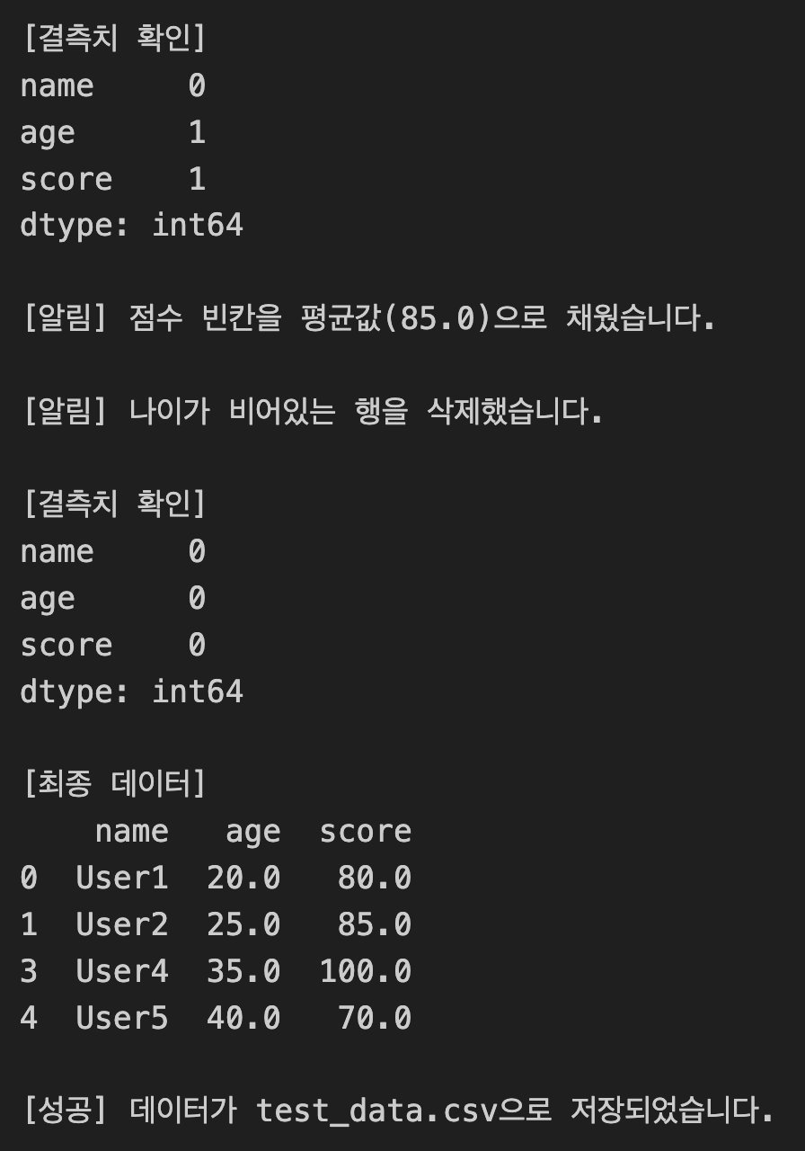 print("\n[알림] 나이가 비어있는 행을 삭제했습니다.")