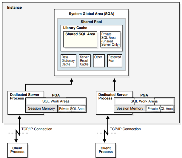 - OS 프로세스 수를 줄인다. 적은 수의 shared server가 많은 dedicated server로 수행하는 것과 동일한 양의 처리가 가능하다.
