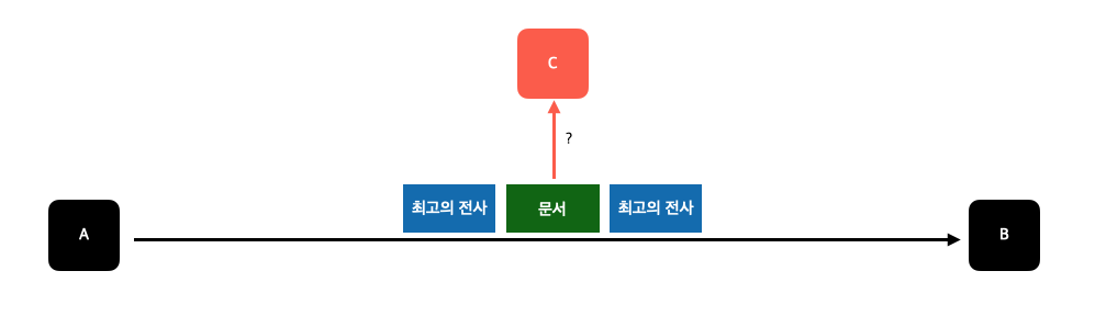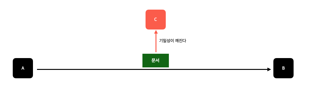 A에서 B로 보내는 데이터를 C가 중간에 가로챌 수 있다.