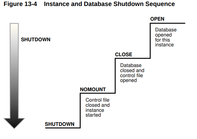 정상적으로 종료됐을 경우, SGA에 있는 데이터들을 데이터 파일과 online redo log file에 기록하고 이 둘도 close한다. SGA 메모리를 해제하고 background 프로세스들도 종료한다.