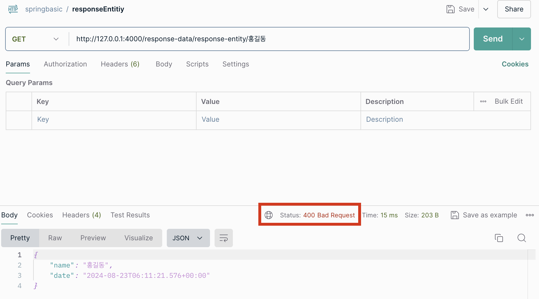 작업이 성공하면 HttpStatus를 200번이 아닌 BAD_REQUEST(400)번으로 반환하겠다.
