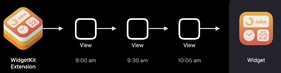 associatedtype Entry: TimelineEntry : 날짜typealias Context = TimelineProviderContext : 타임라인을 요청할 때 현재의 환경 정보func getSnapshot() : 시스템이 single entry를 요청할 때funt getTimeline() : 시스템이 series of entrise를 요청할 때public struct Provider: TimelineProvider {