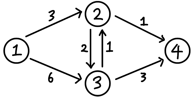 위와 같은 그래프가 있다. 위에서 설명한 논리 그대로 정점 1에서 부터 다른 정점까지의 최단 거리를 구해보겠다.