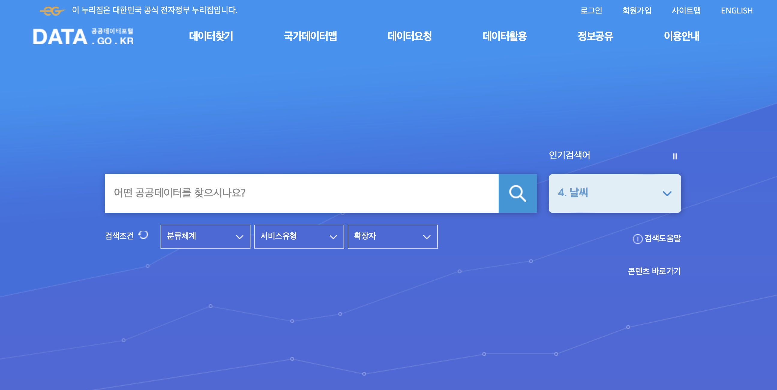 공공데이터포탈 접속 : https://www.data.go.kr/index.do