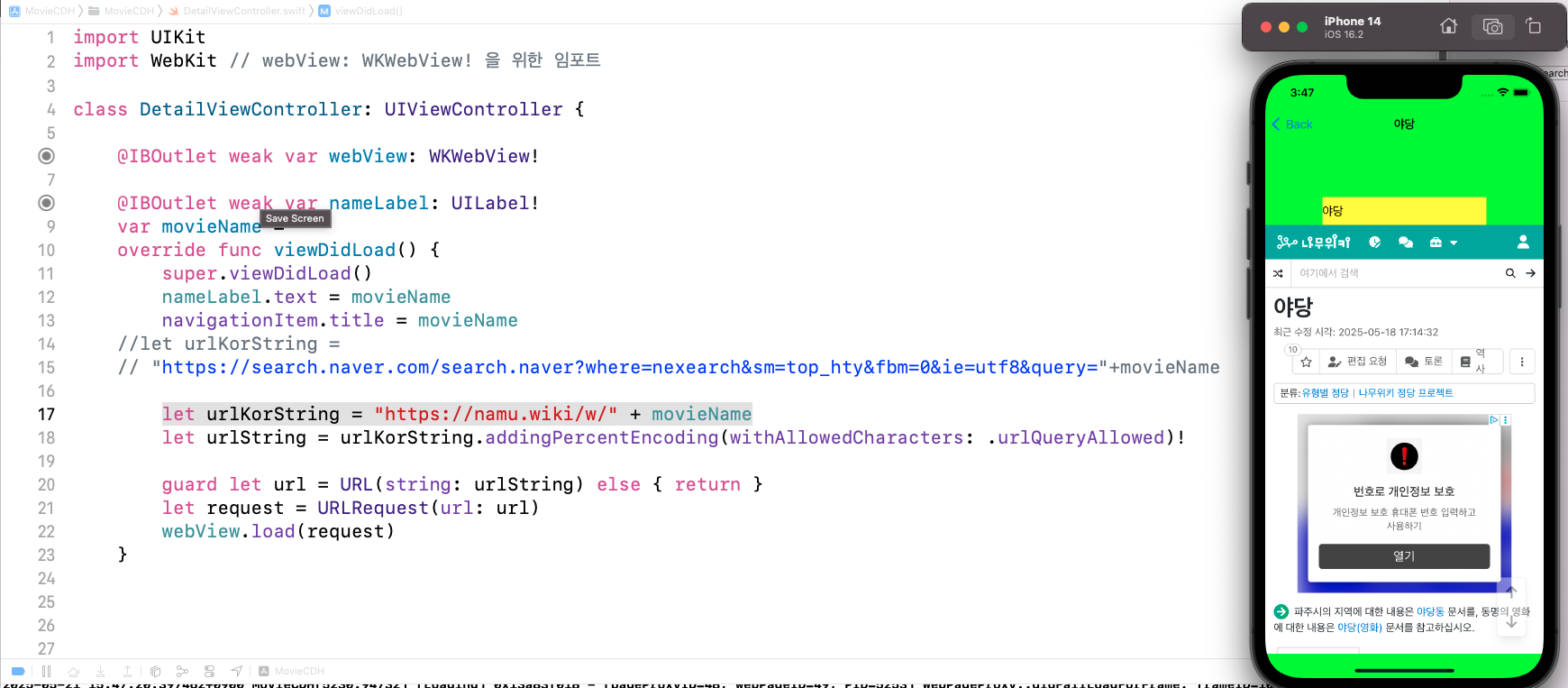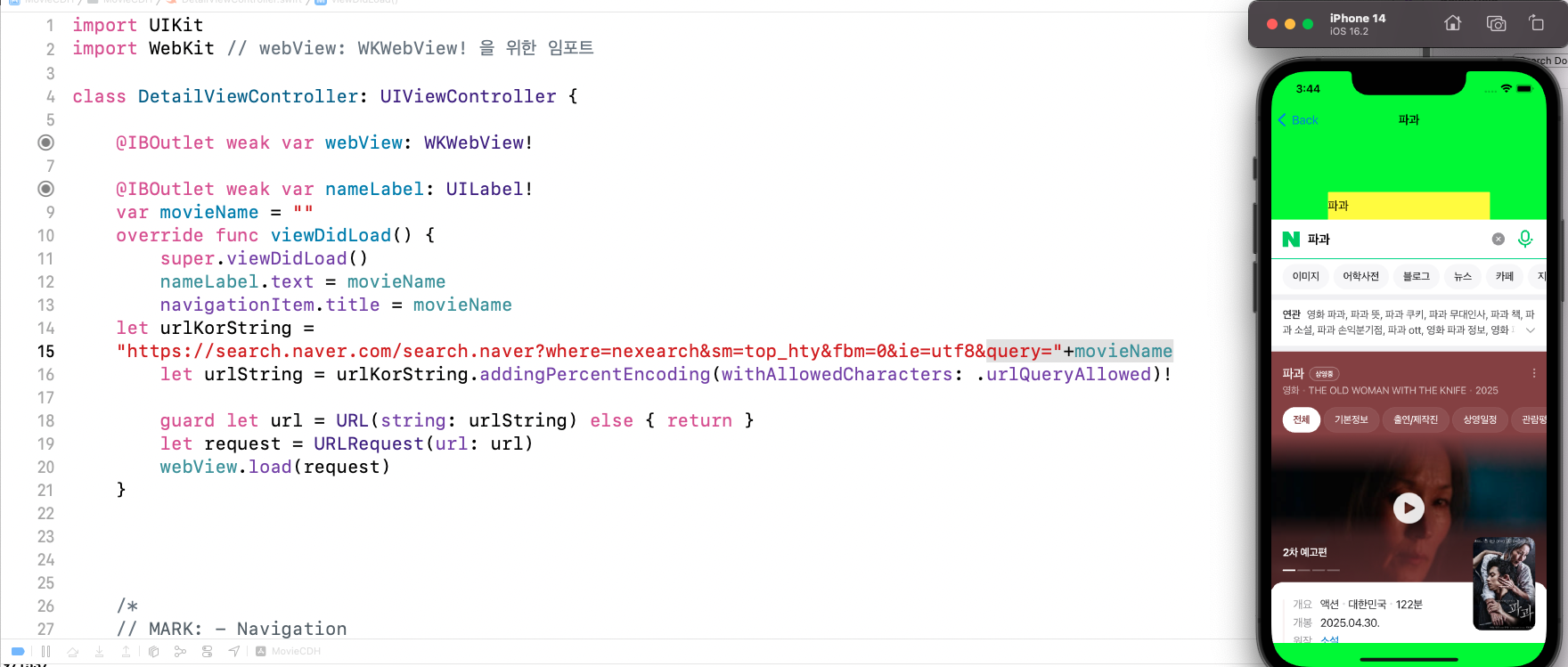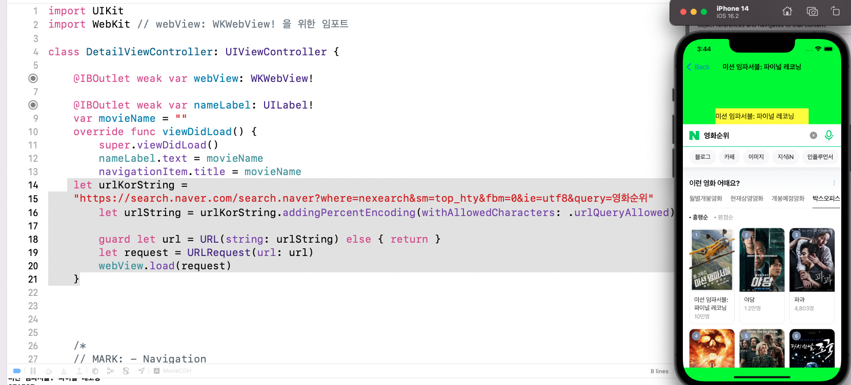 movieURL = movieURL + makeYesterdayString() // 어제 날짜를 불러오기 위한 함수 만들고 호출하기