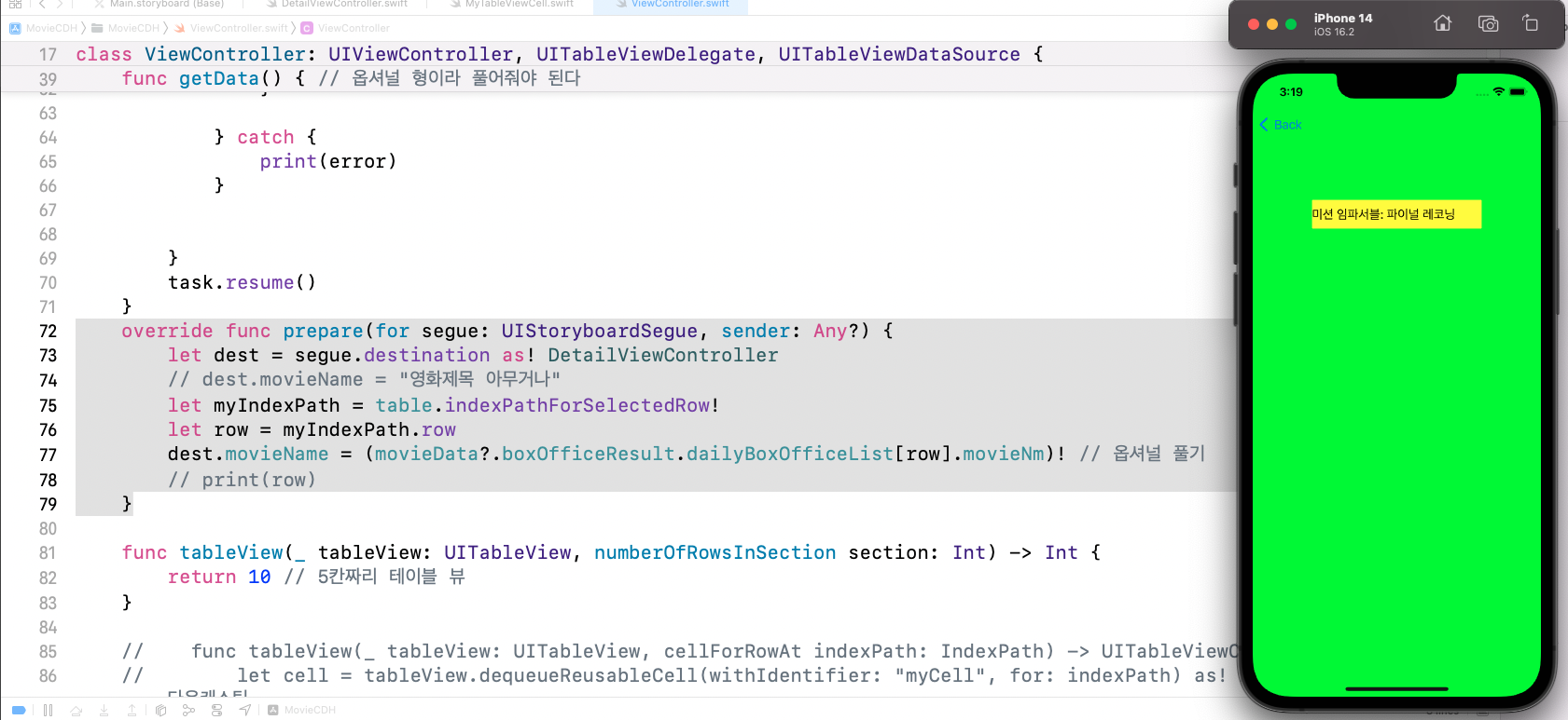 dest.movieName = (movieData?.boxOfficeResult.dailyBoxOfficeList[row].movieNm)! // 옵셔널 풀기