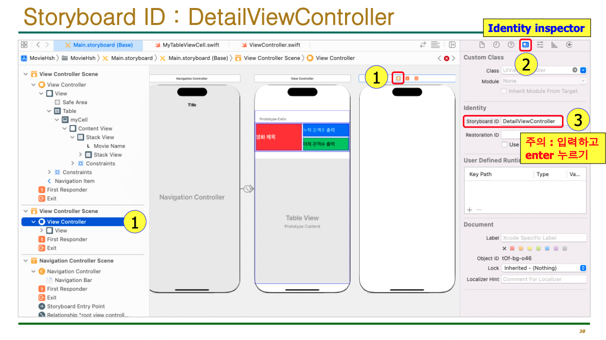 Identity inspector 확인하기