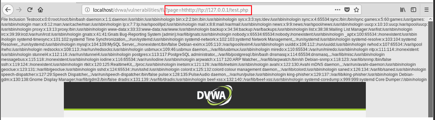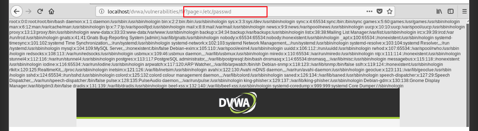 - DVWA file inclusion탭의 첫 번째 파일 Open