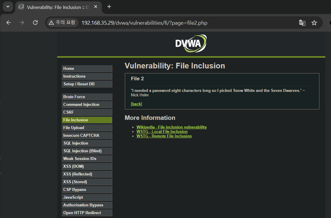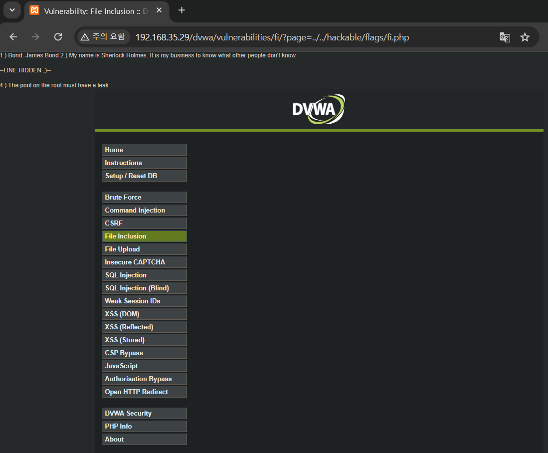 https://velog.io/@jckim22/%EB%B9%A1%EA%B3%B5%ED%8C%9F-5%EC%A3%BC%EC%B0%A8-%EA%B3%BC%EC%A0%9C-5-DVWA-write-up-File-Inclusion-row