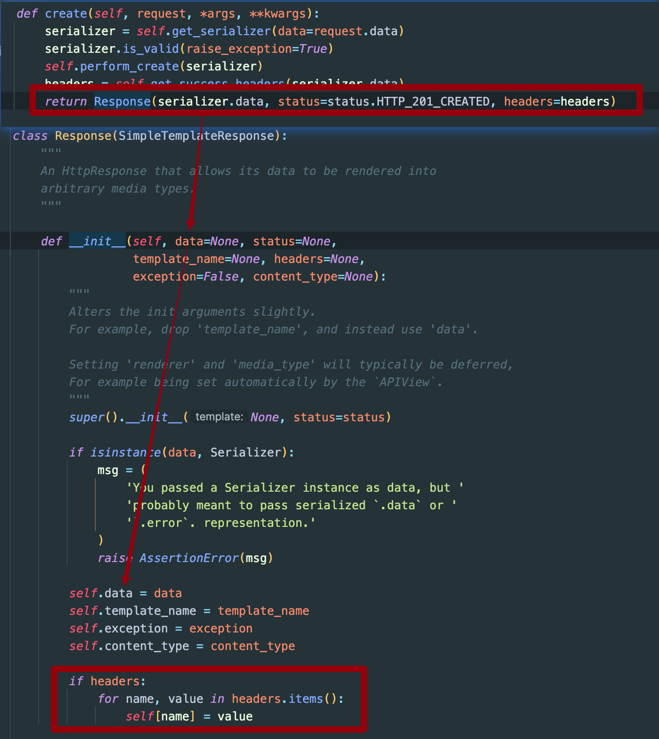 마지막으로 메서드 핸들러는 DRF 응답 인스턴스를 생성합니다