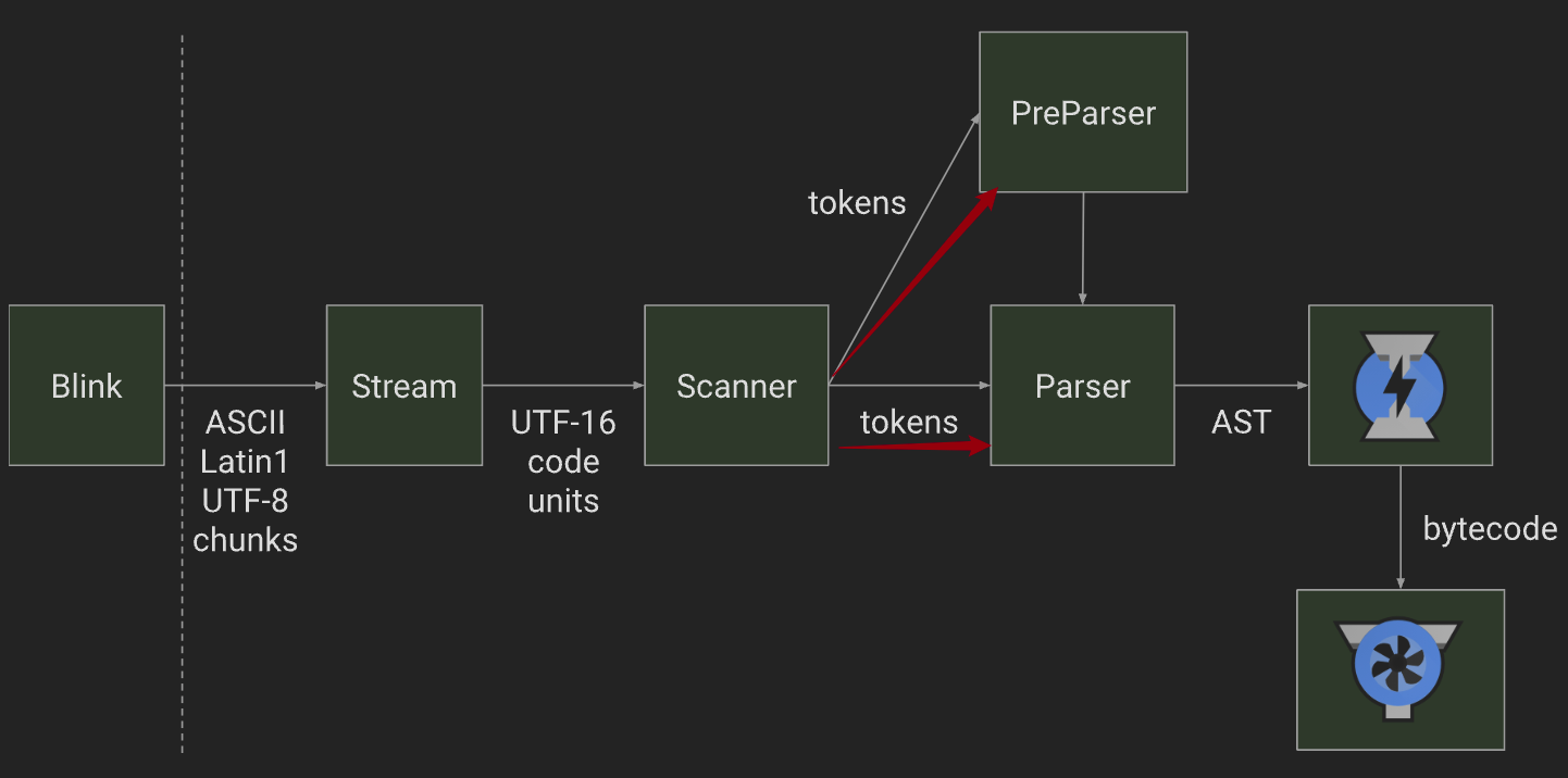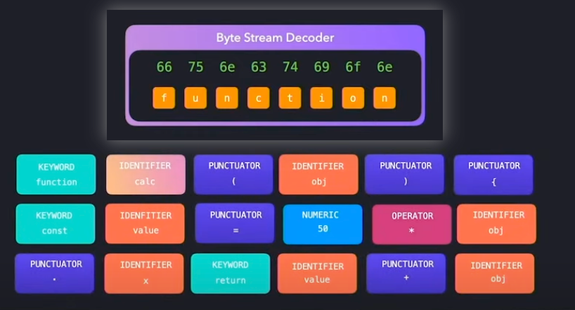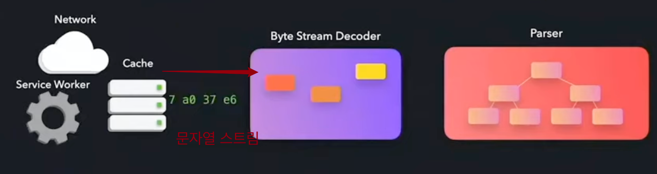 Understanding the V8 Javascript Engine Youtube 세미나를 보면 네트워크에서 Byte Stream Decoder로 이진수로 된 문자열 스트림