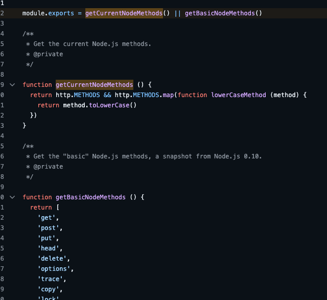 현재 HTTP 요청에 Methods가 있으면 해당 Method를 반환하고 아니면 Nodejs의 기본 메서드 배열을 반환해주는 라이브러리이다!