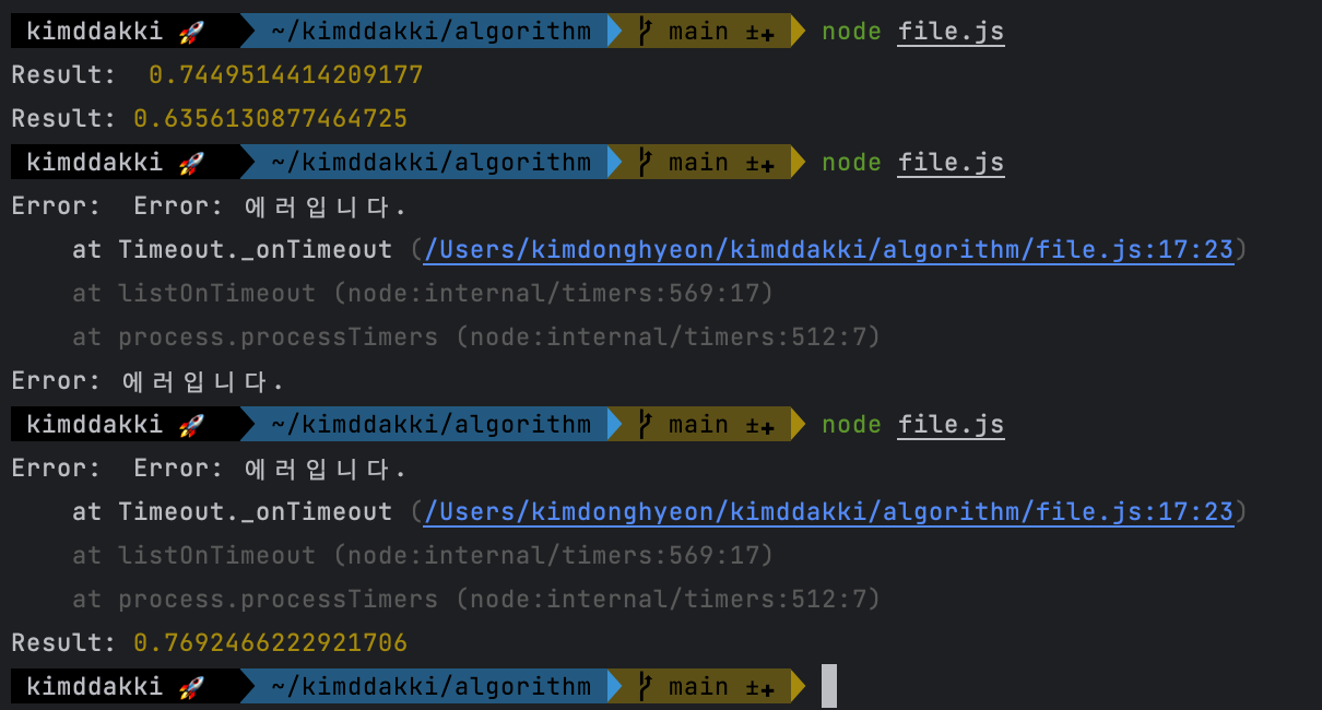 몇 번 실행해보면, 아래와 같은 결과들이 나온다!