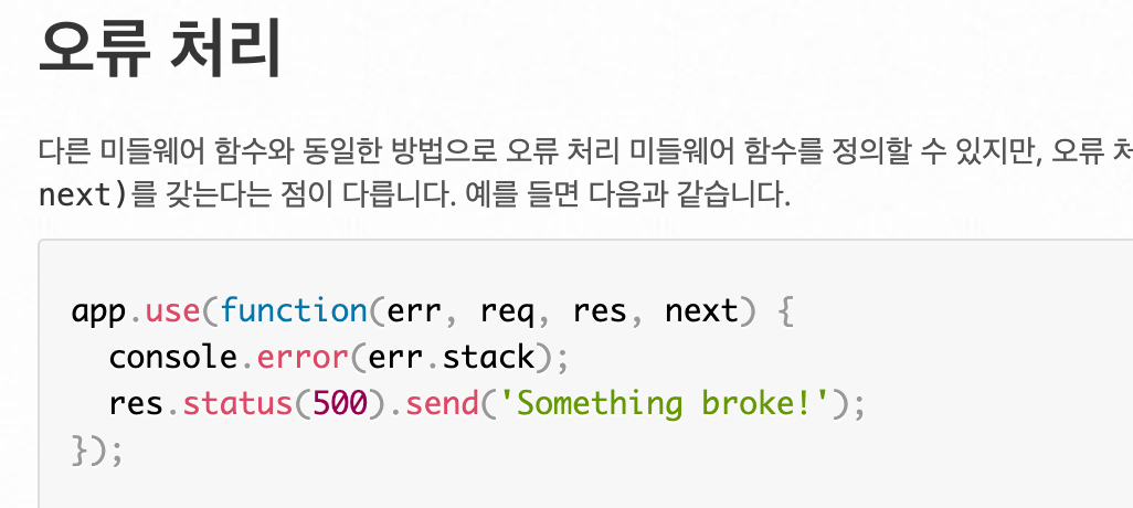 즉, err은 항상 콜백의 첫 번째 매개변수로, 오류가 발생했다면 오류의 내용을 첫 번째 매개 변수로 전달한다.
