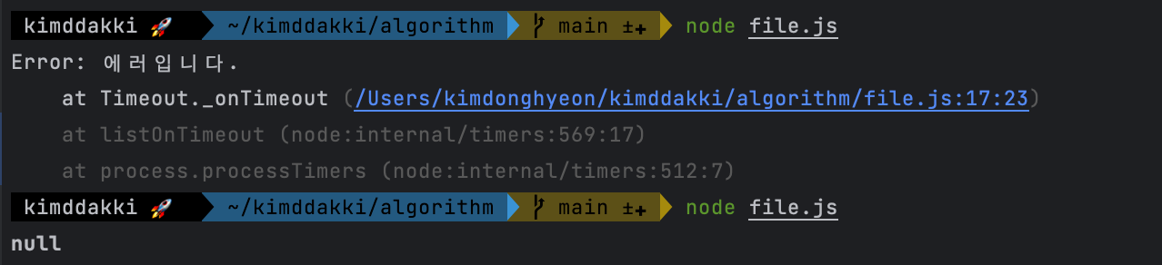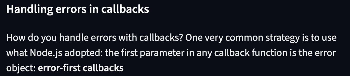 ✅ 우리는 콜백 함수에서 에러가 발생할 경우 첫 번째 인자로 에러를 넘겨준 다는 것을 확인했다.