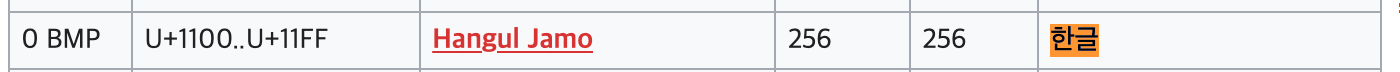 유니코드 영역 위키백과를 들어가보면 한글 자모가 U+1100 ~ U+11FF에 위치하고 있는 것을 확인 할 수 있다.
