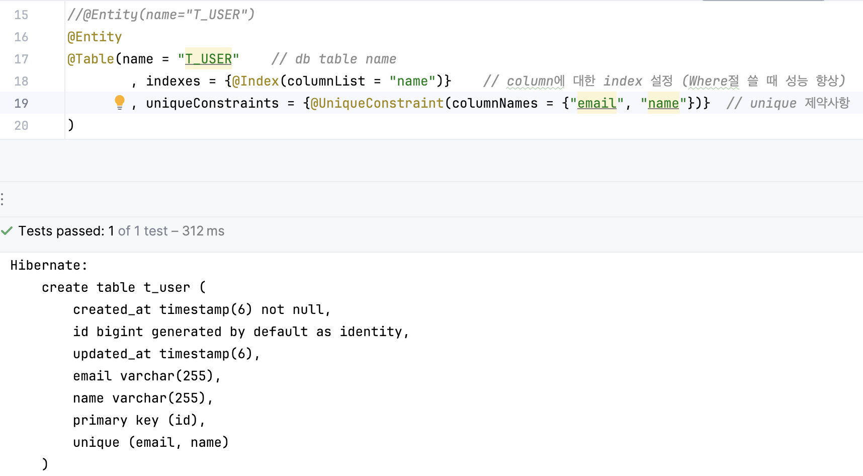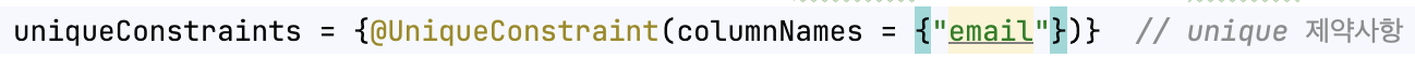 정답: uniqueConstraints는 복합키로도 unique 설정 가능
