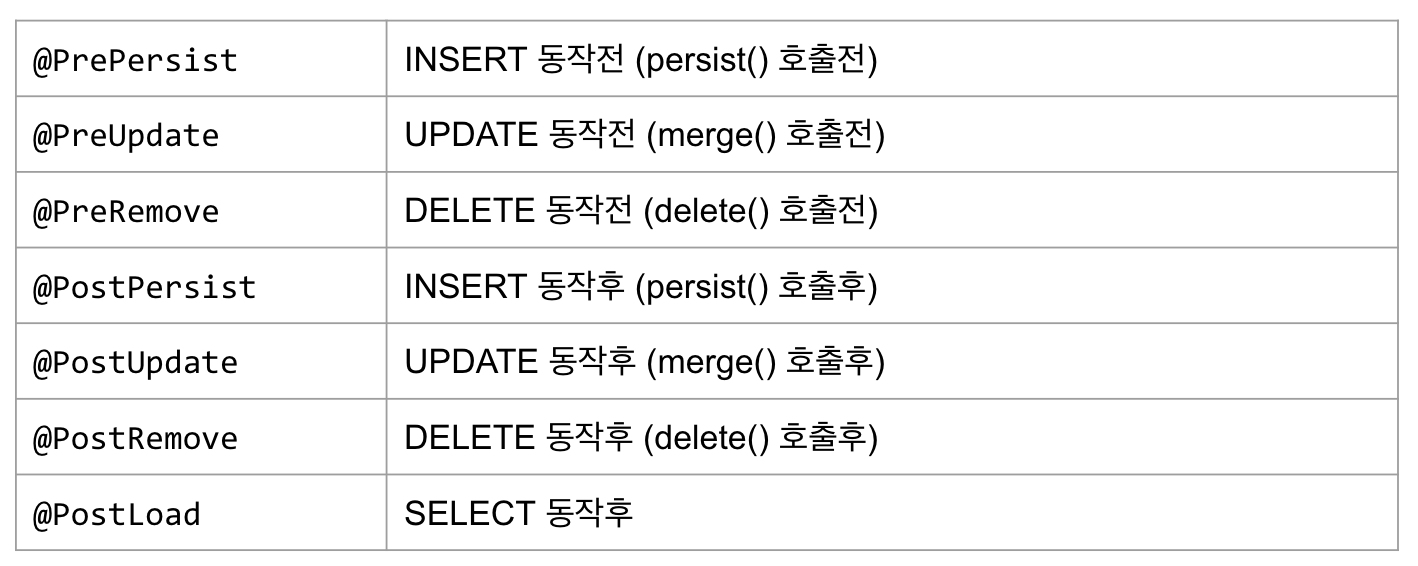 @PreUpdate // User 가 UPDATE 수행하기 전