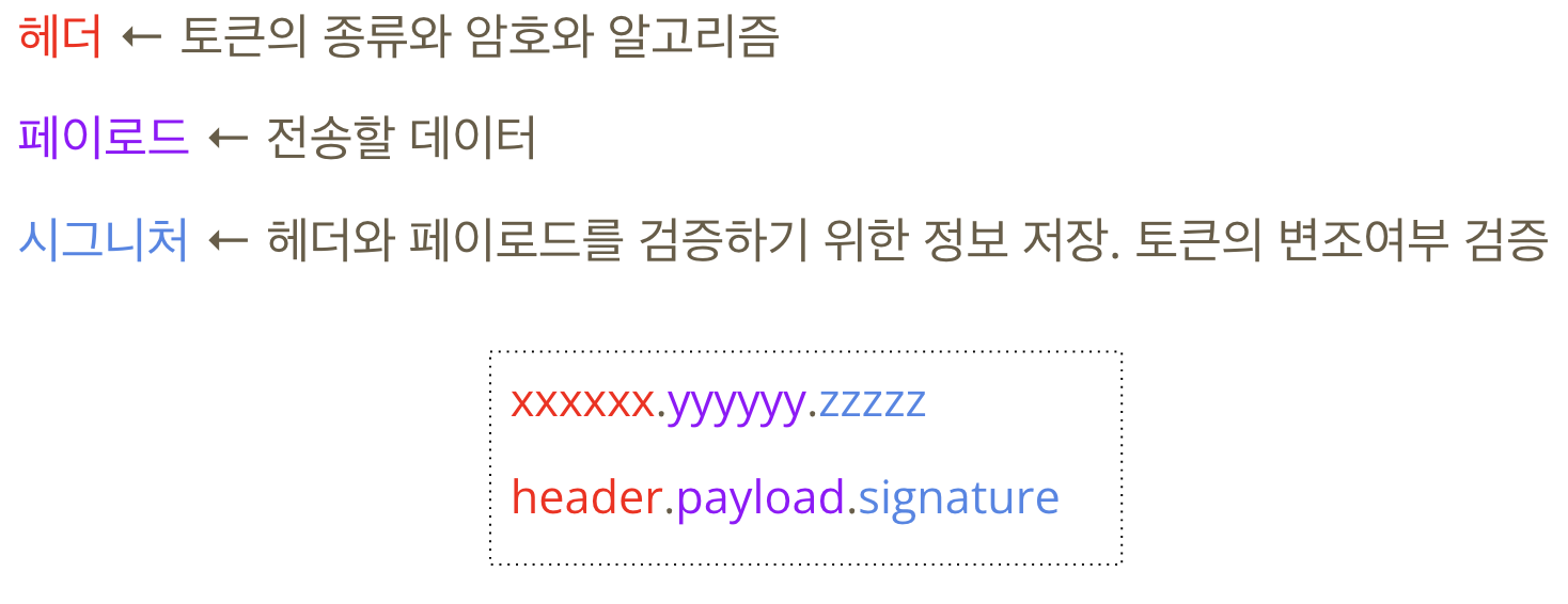 - signature : 검증을 위해 필요 (header + payload 인코딩)