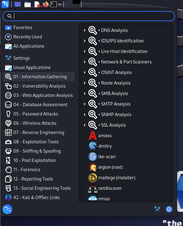 정보수집, 취약점 분석, 웹 어플리케이션 분석 등 다양한 툴이 기본적으로 설치되어 있습니다.